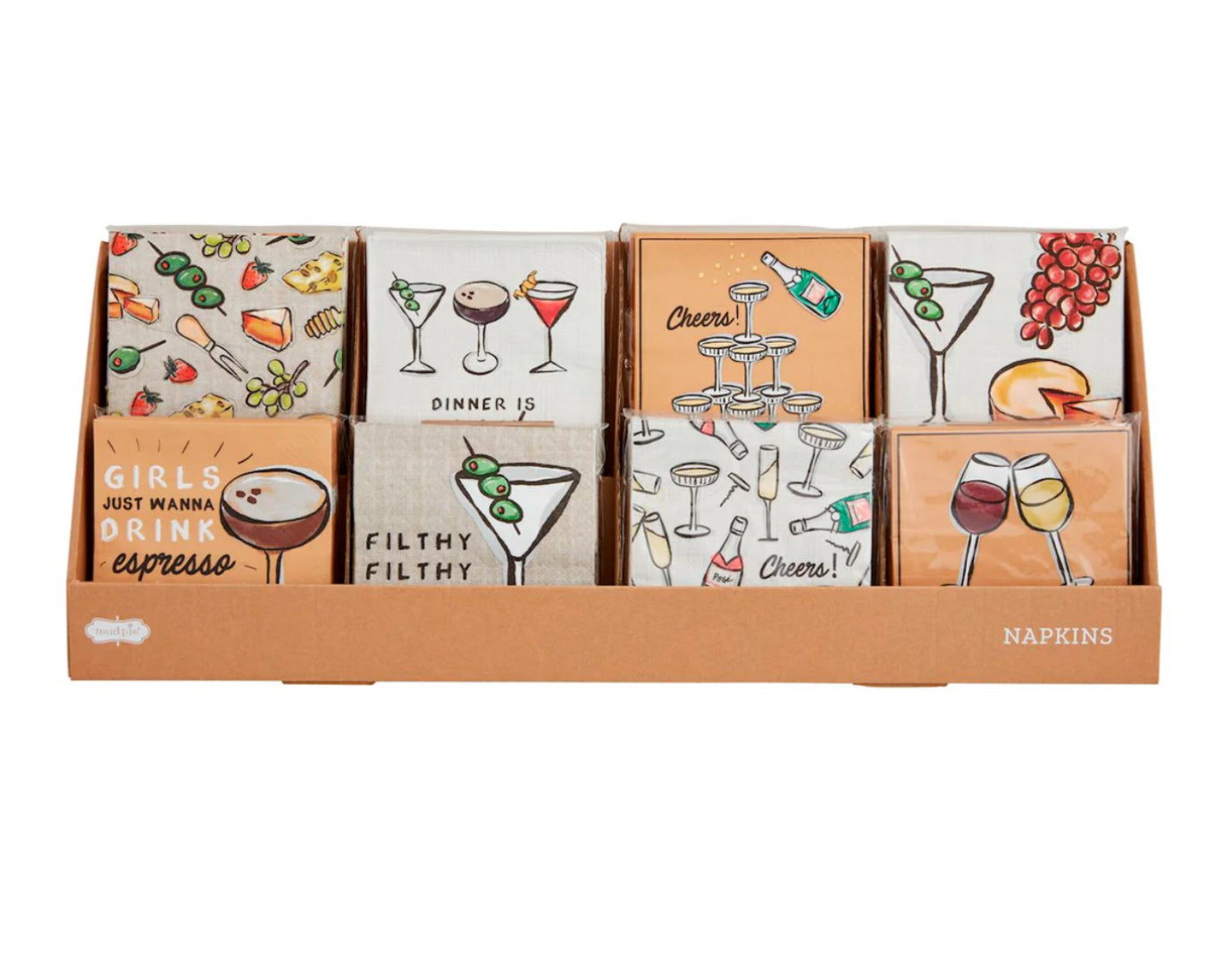 Pack of 12 paper cocktail napkins. Comes in kraft displayer.