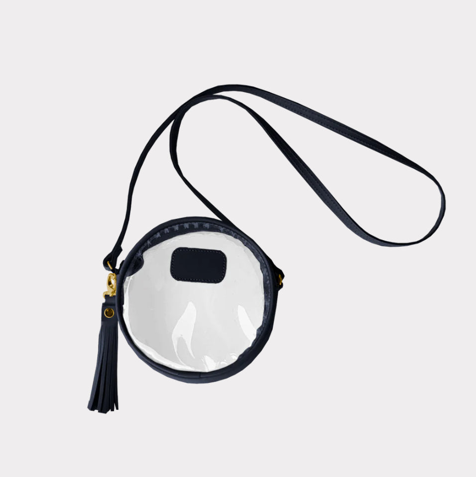 This unique geometric bag is perfect for when you something more than a little different. This stadium compliant bag has plenty of room for essentials and adds a little extra pizazz with a detachable leather tassel. Perfect for concerts and sporting events.