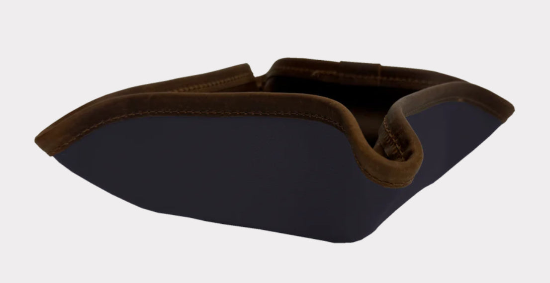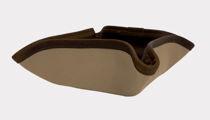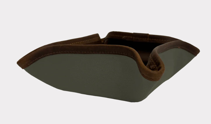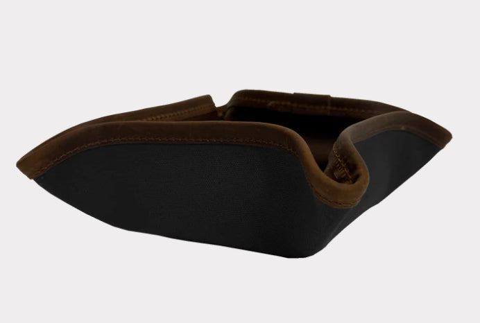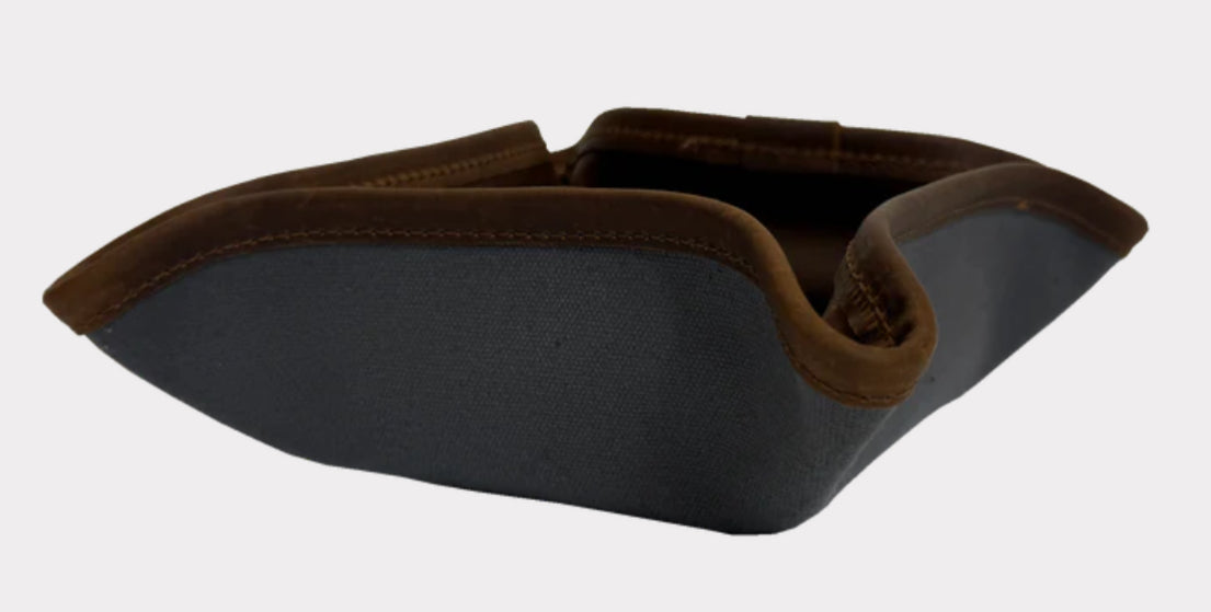 A place for everything, and everything in its place! The JH Catch All keeps your keys, wallet, and essentials tidy at home and on the go. Snaps into a tray, packs flat, and is now available in the JH cotton canvas and oiled leather combo!