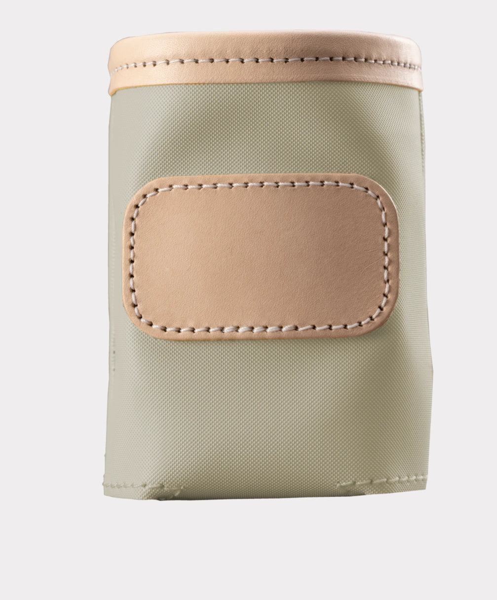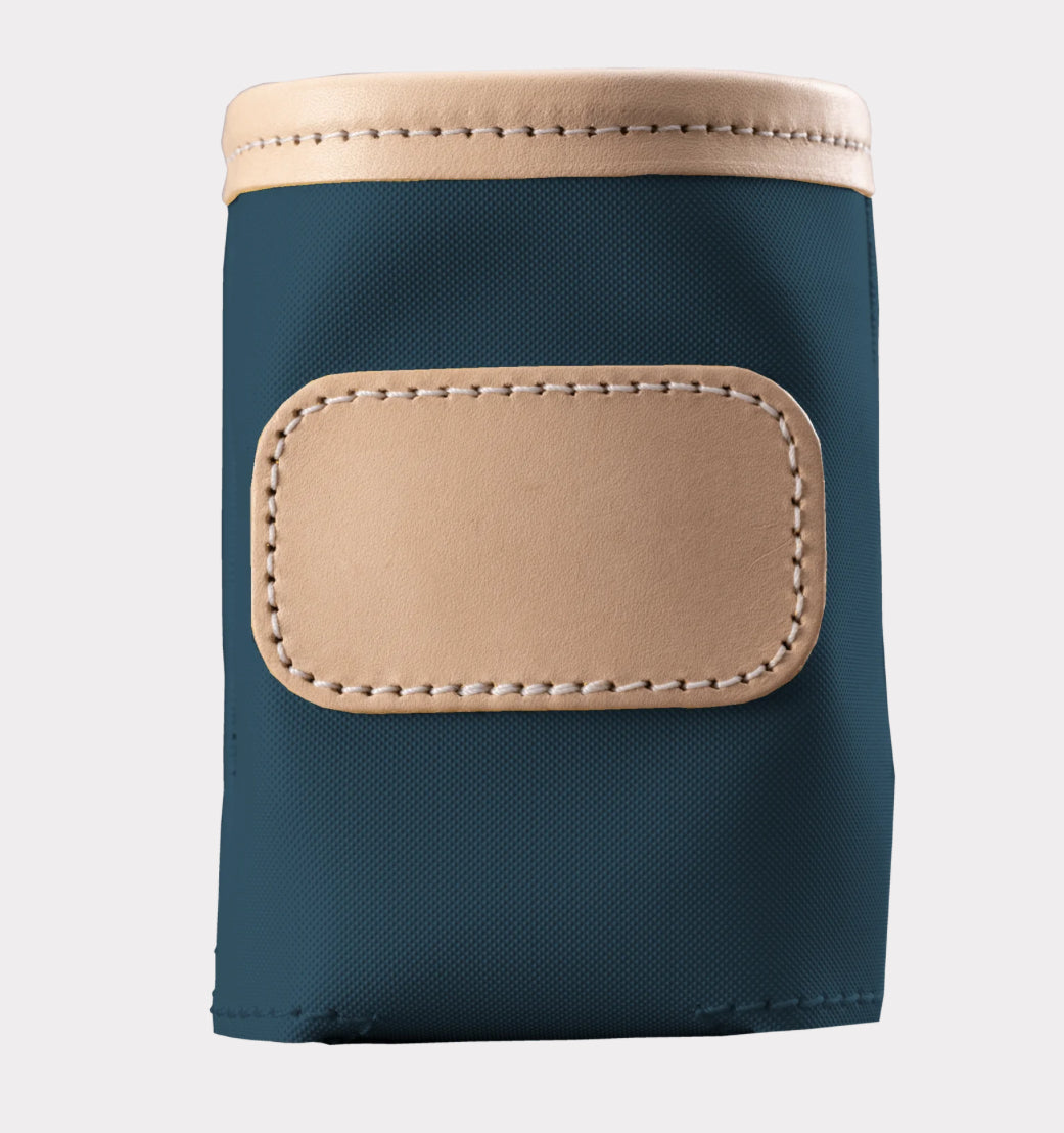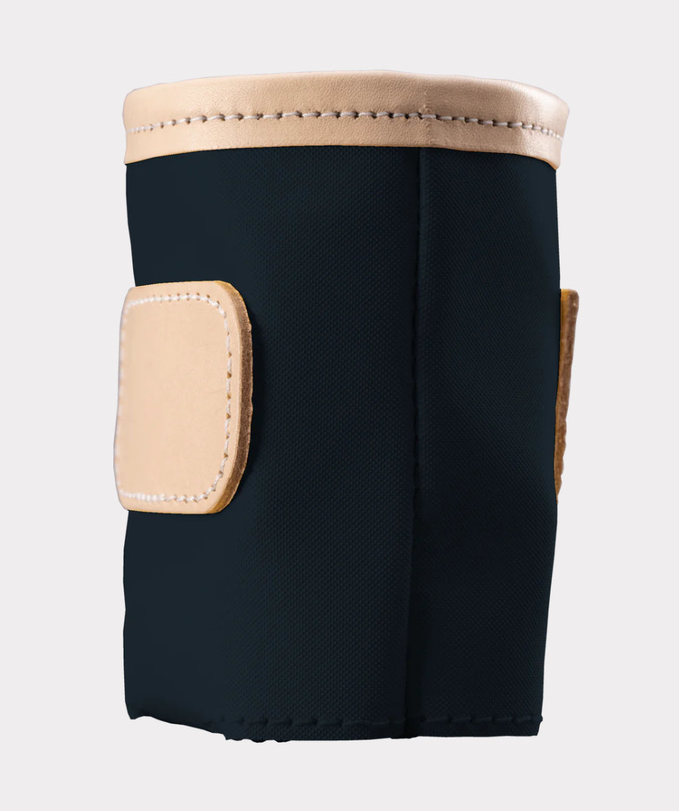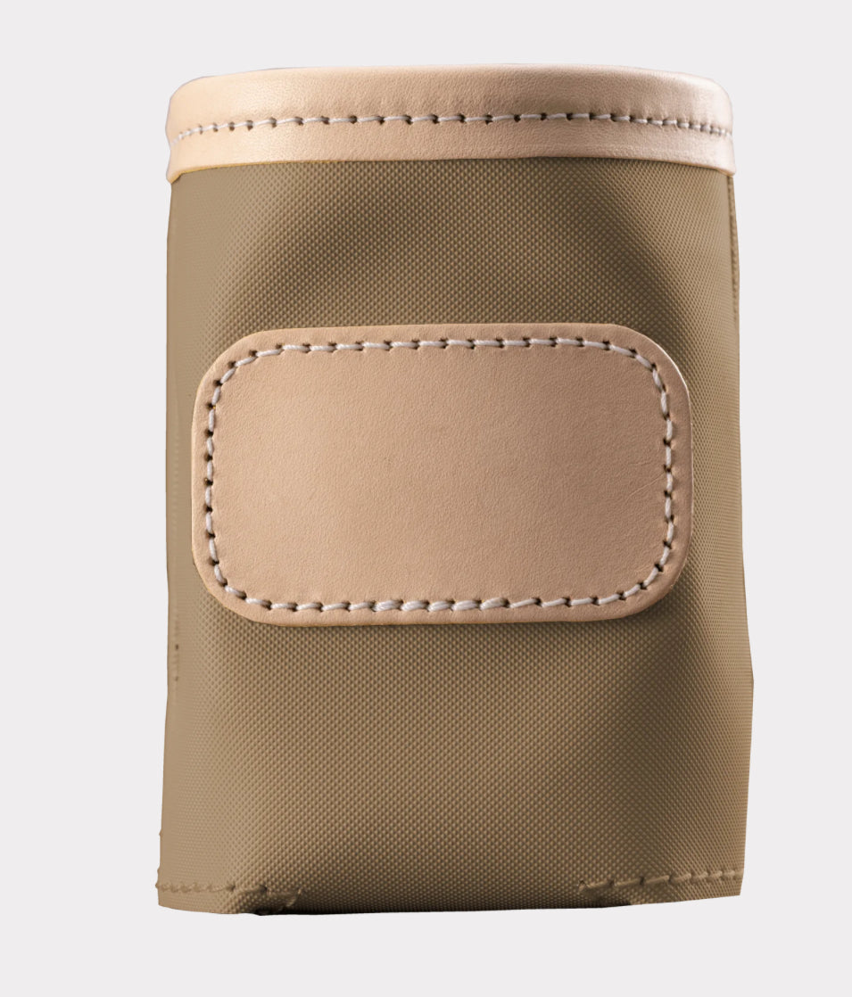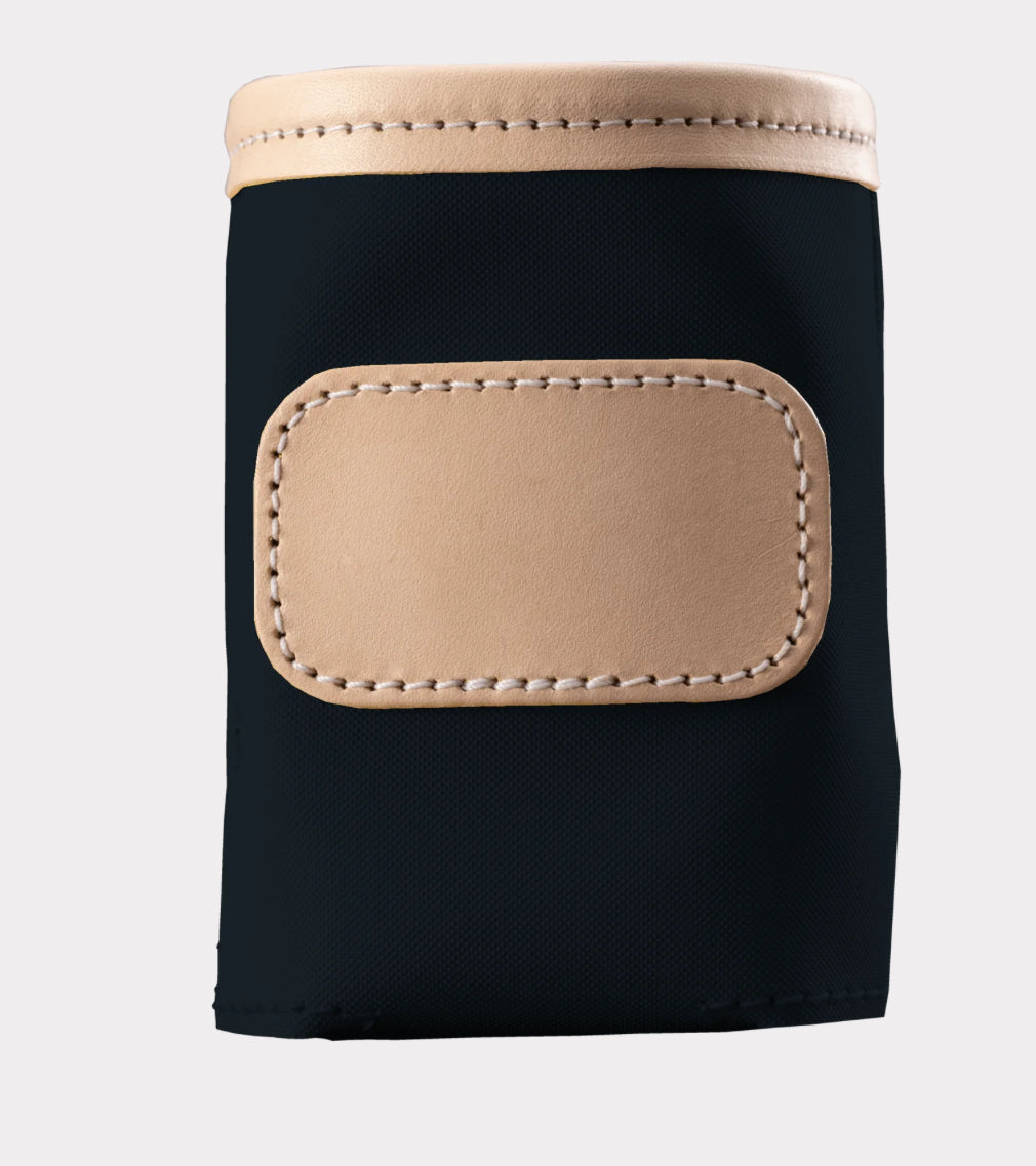 A new design for an old favorite. Keep your drinks cold with this insulated collapsible can cooler. Coated canvas with Natural Leather trim.