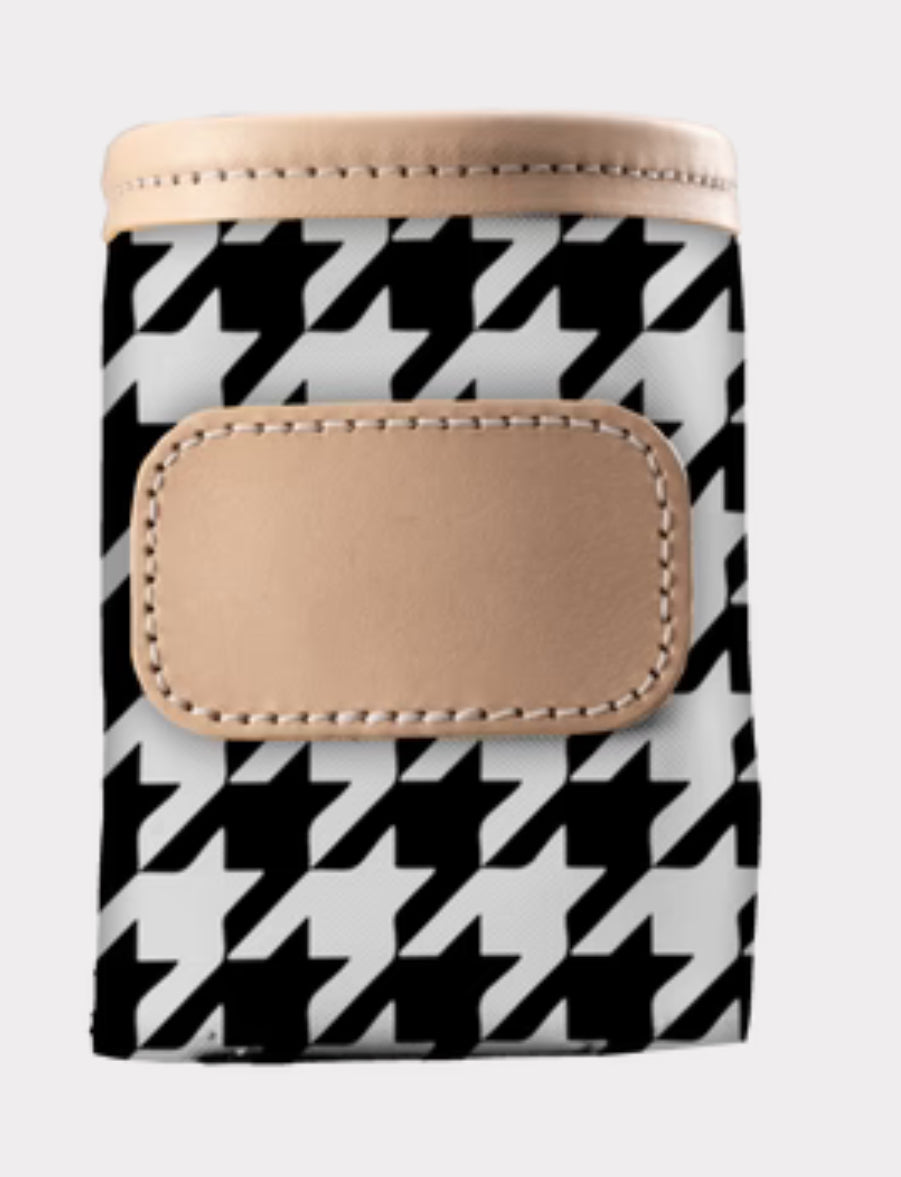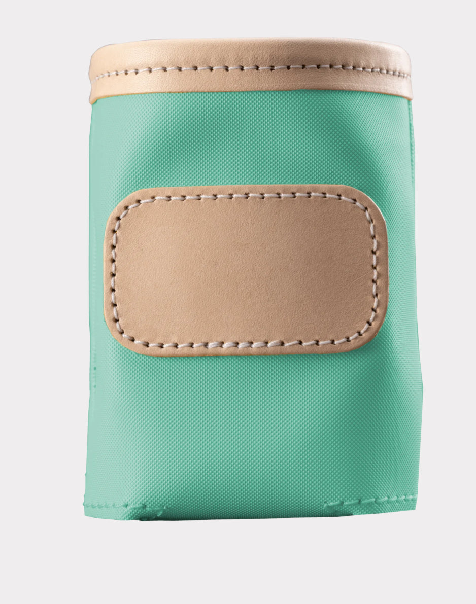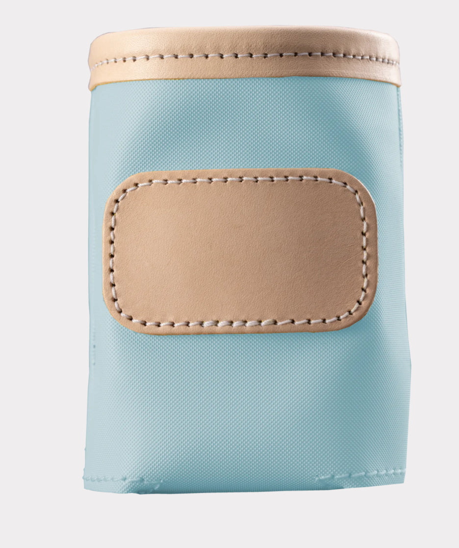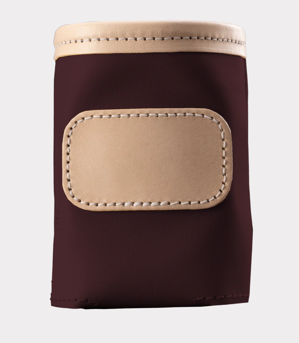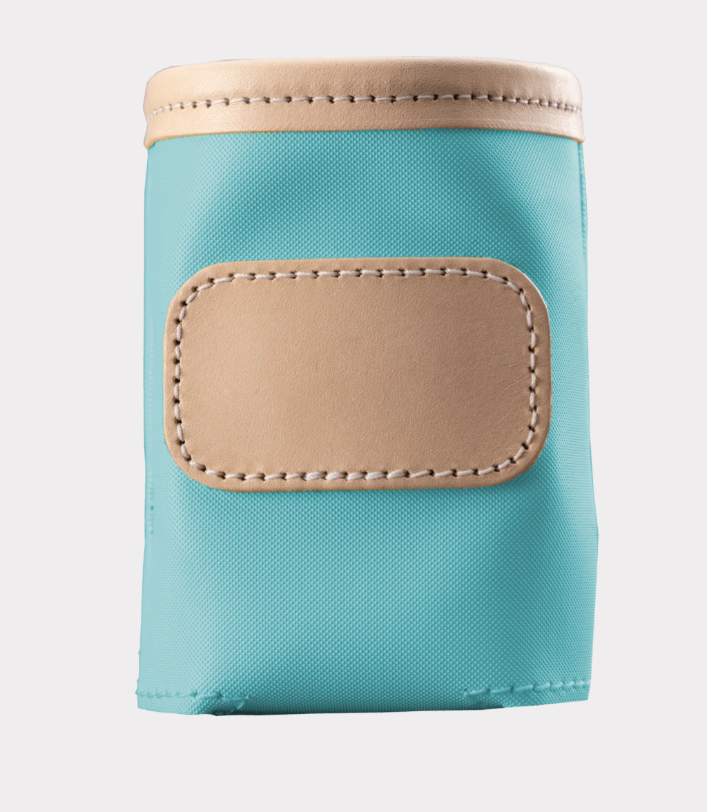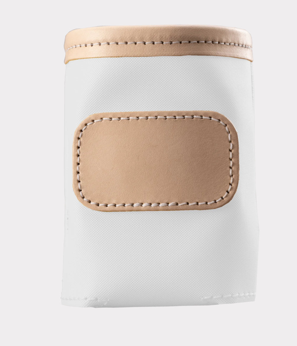 A new design for an old favorite. Keep your drinks cold with this insulated collapsible can cooler. Coated canvas with Natural Leather trim.