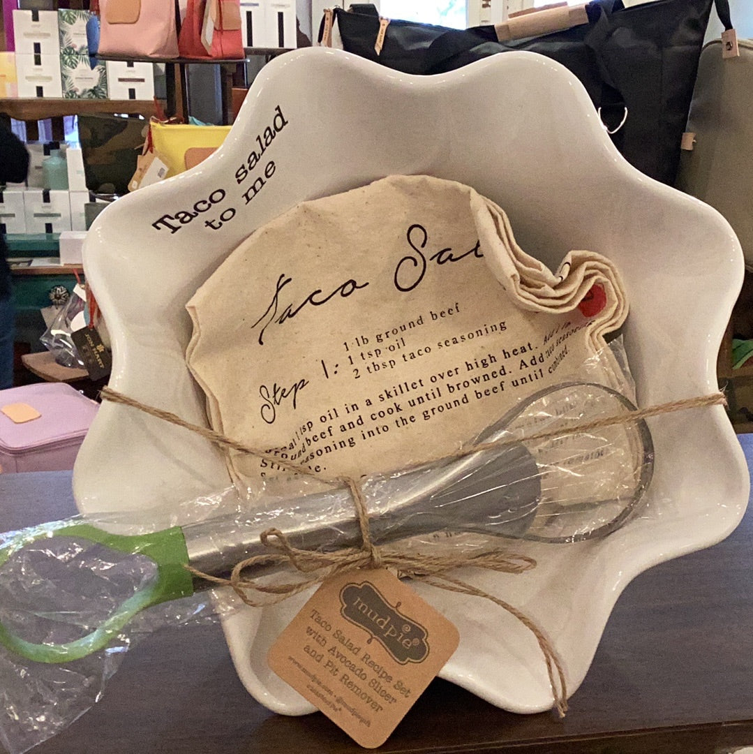 Taco Salad to me bowl with taco salad towel and avocado slicer/pit remover
